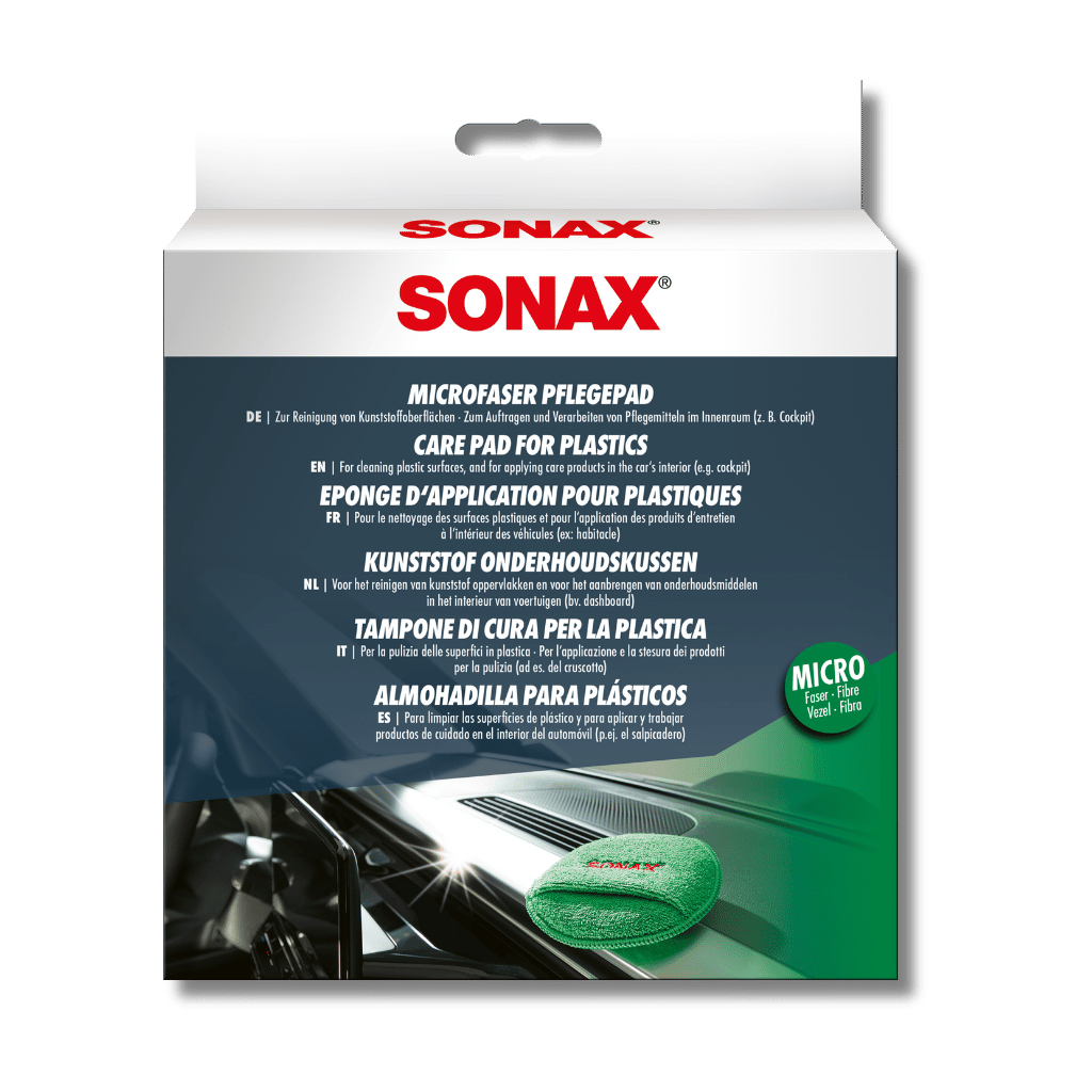 The SONAX Microfibre Care Pad is a high-quality microfibre cleaning pad designed for gentle yet effective cleaning of various interior surfaces as well as applying dressings and sealants.